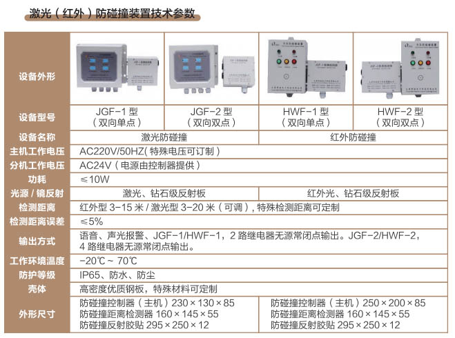 激光(紅外)防碰撞裝置技術(shù)參數(shù) 瀏覽:1214
