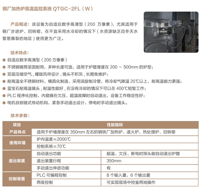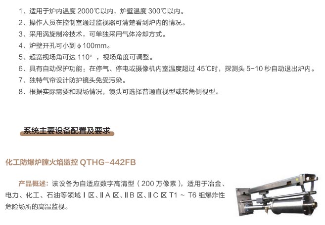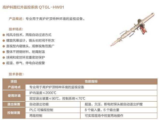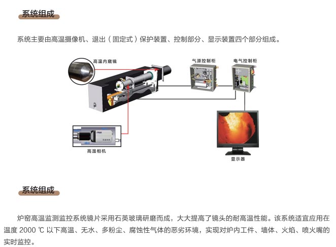 爐窯高溫監(jiān)測監(jiān)控系統(tǒng)是專為工業(yè)高溫爐窯監(jiān)測監(jiān)控的設(shè)計的智慧管理平臺,是針對爐壁開孔和爐窯視像有嚴格要求的高溫爐窯而研制的高溫工業(yè)電視。利用特種高溫孔式光學鏡頭,鏡頭設(shè)計采用中繼物鏡,兩次成像系統(tǒng),使像面在遠離觀察孔的CCD靶面上形成,最大限度的減少進入攝像機的熱輻射,致力為冶金、電力、建材、礦山、化工等行業(yè)服務(wù)。我公司研發(fā)主導產(chǎn)品已擁有第三代SG內(nèi)窺式高溫工業(yè)電視系列、爐壁式高溫工業(yè)電視系列、內(nèi)窺式拐角高溫工業(yè)電視系列、鍋爐汽包水位電視系統(tǒng)等成套設(shè)備,以及各種風冷防護罩,水冷防護罩,渦旋制冷防護罩等工業(yè)監(jiān)控設(shè)備配套產(chǎn)品。產(chǎn)品廣泛應用于鋼鐵廠加熱爐、退火爐,電廠鍋爐爐膛火焰、水泥廠回轉(zhuǎn)窯窯頭看火、篦冷機看料、玻璃廠玻璃熔窯等特殊高溫環(huán)境。幫助用戶進行工業(yè)爐實時電視監(jiān)測及控制,解決設(shè)備的運行故障等,對用戶改善產(chǎn)品質(zhì)量、降低成本、安全生產(chǎn)有著獨特的成效。受到了用戶的一致好評。